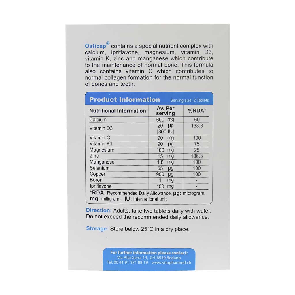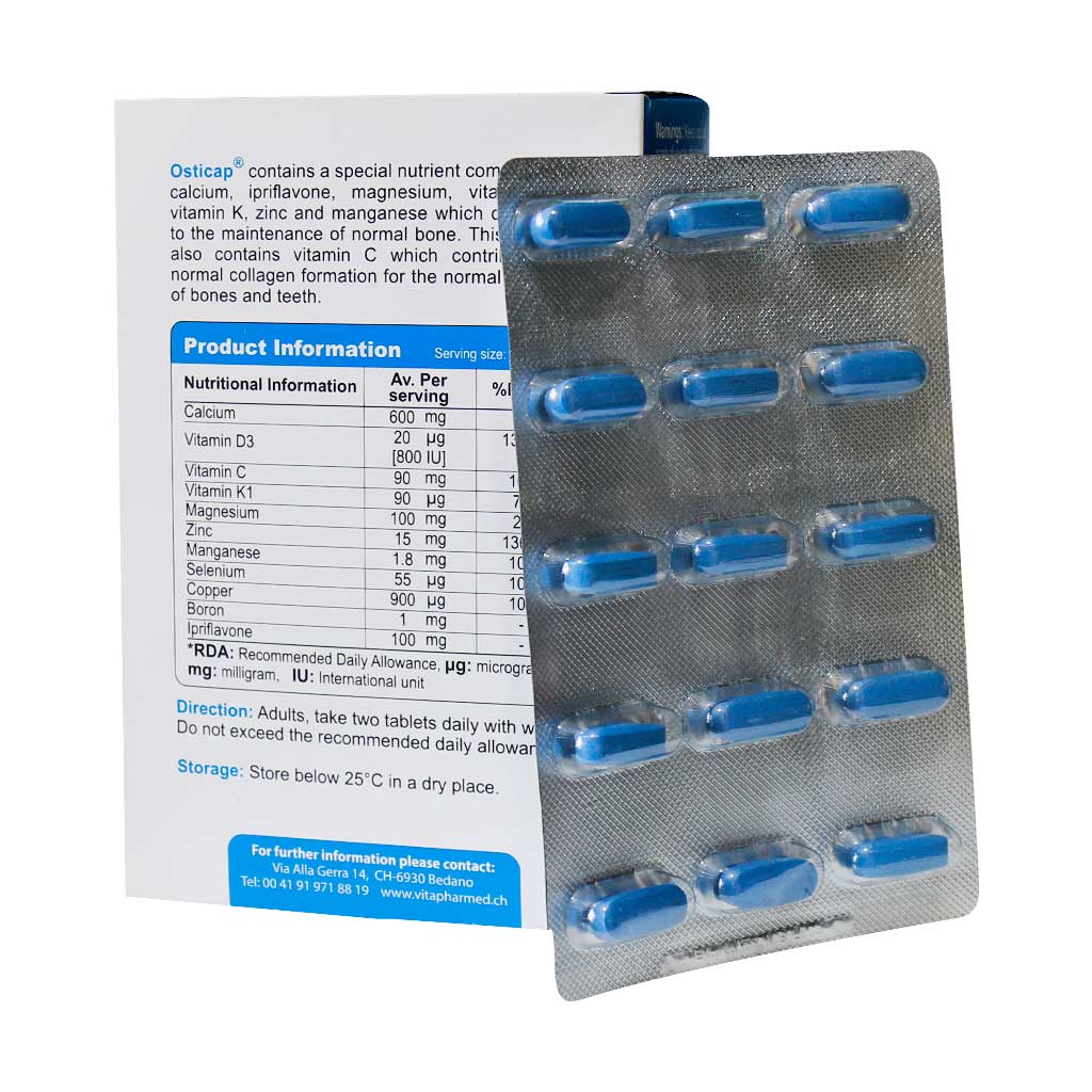 قرص اوستی کپ ویواتیون یک مکمل تغذیه ای حاوی کلسیم، زینک، و ویتامین های D3، C و K1 بوده که جهت کمک به حفظ سلامت استخوان ها مصرف می شود.